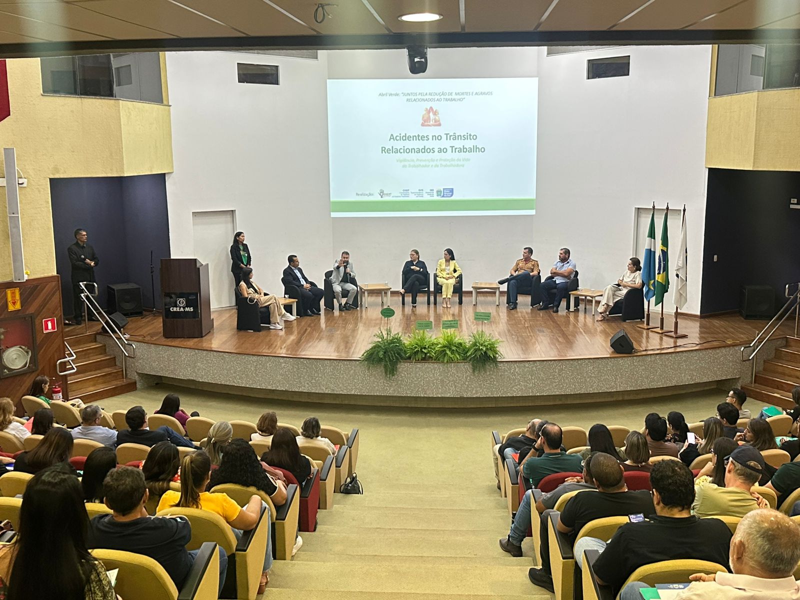 Como parte da campanha Abril Verde 2026, o Governo de Mato Grosso do Sul, por meio da SES (Secretaria de Estado de Saúde), realizou nesta última terça-feira (7), em Campo Grande, o seminário “Acidentes no Trânsito Relacionados ao Trabalho: Vigilância, Prevenção e Proteção da Vida do Trabalhador e da Trabalhadora”.