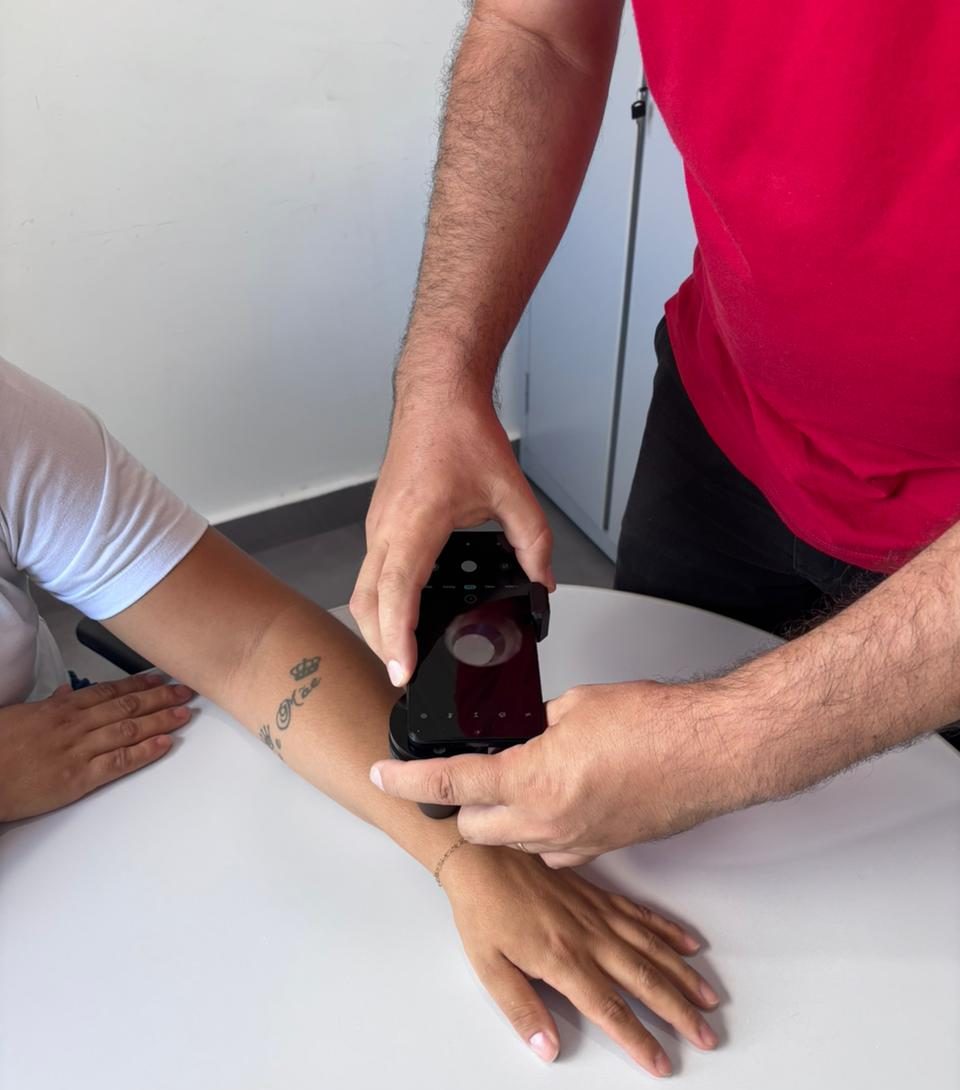 Com o telediagnóstico, o processo muda. O médico registra as informações clínicas do paciente no sistema e a equipe de enfermagem realiza fotografias da lesão com apoio do dermatoscópio. As imagens e os dados são enviados para avaliação de um dermatologista, que devolve um laudo com orientações e conduta clínica, geralmente em até 72 horas.