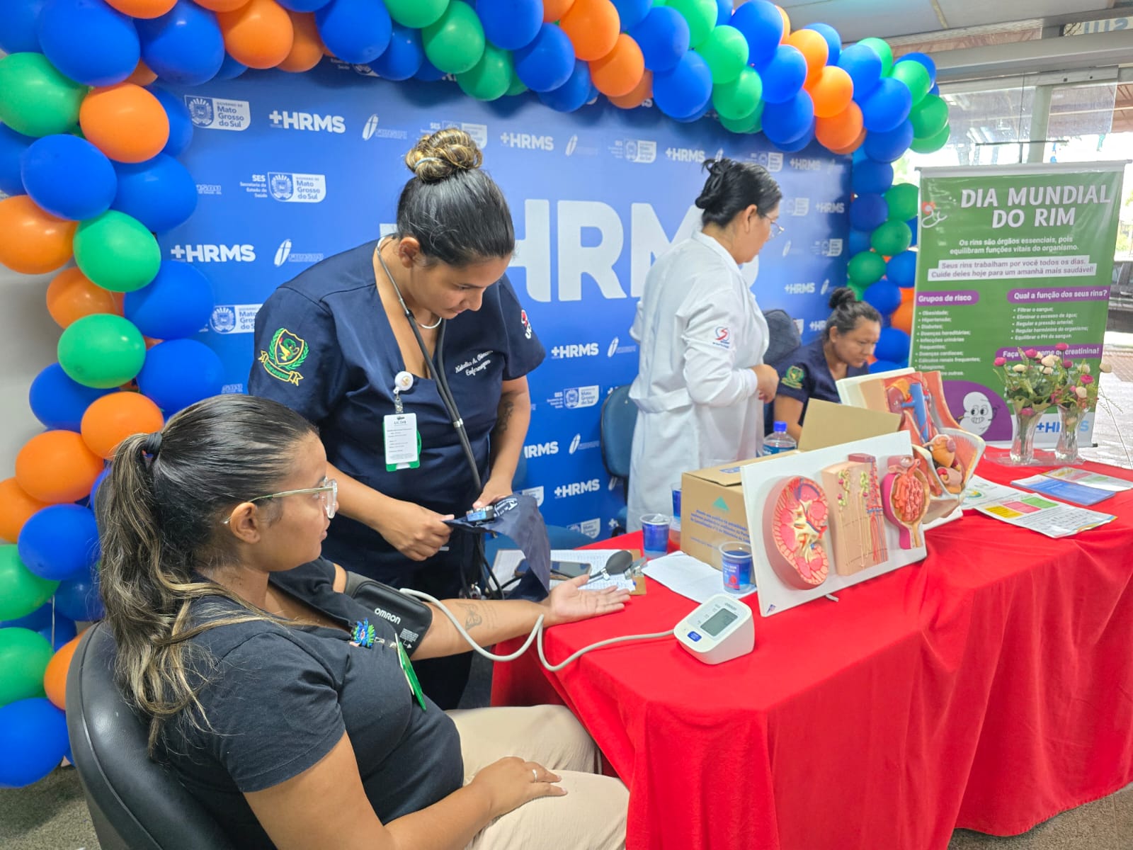 • Nesta quinta-feira (12), data em que é celebrado o Dia Mundial do Rim, o HRMS (Hospital Regional de Mato Grosso do Sul) promove uma ação de conscientização voltada à prevenção das doenças renais. A iniciativa inclui aferição de pressão arterial, distribuição de água e entrega de materiais informativos sobre a doença renal crônica, reforçando a importância do diagnóstico precoce e dos hábitos de vida saudáveis.