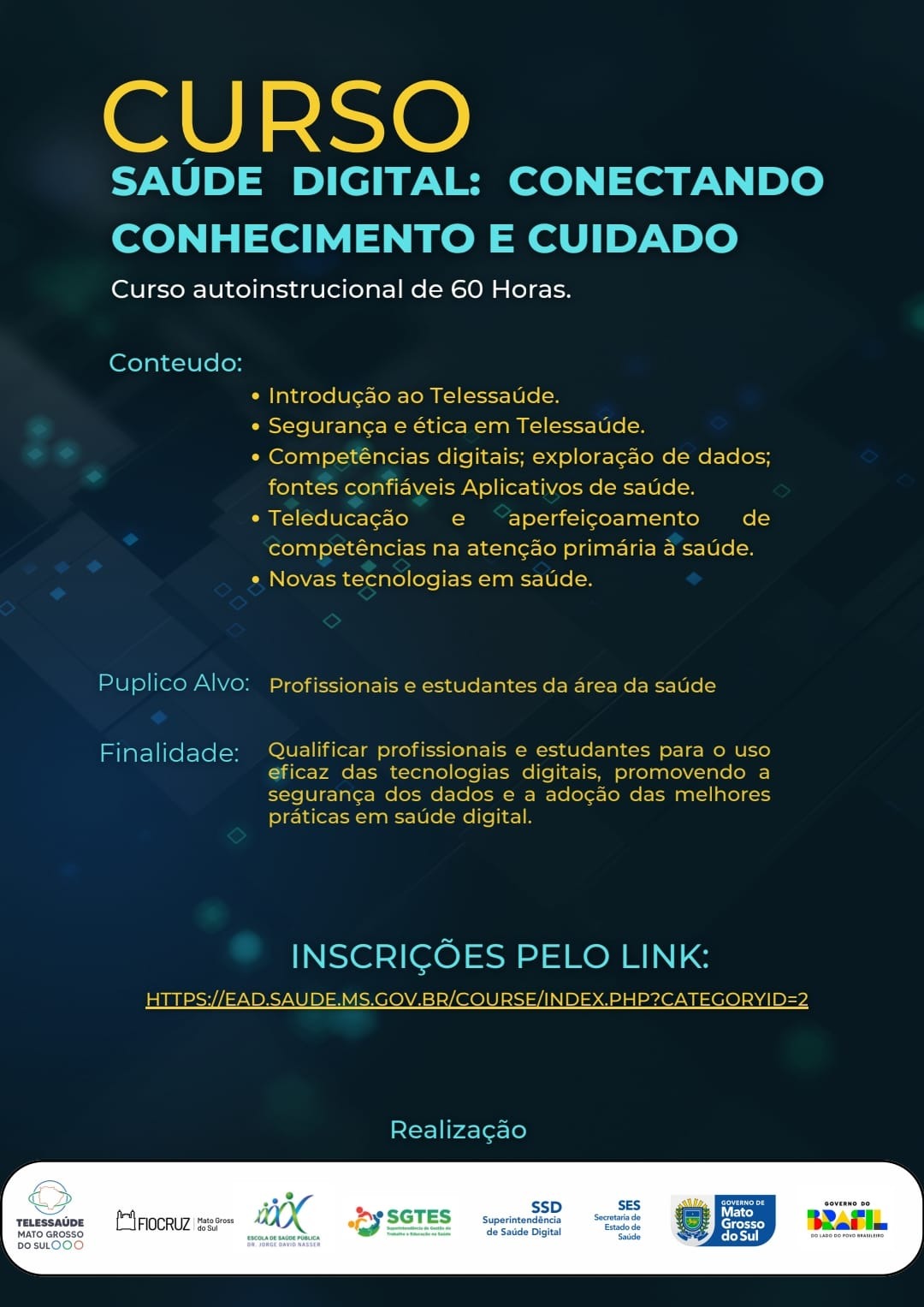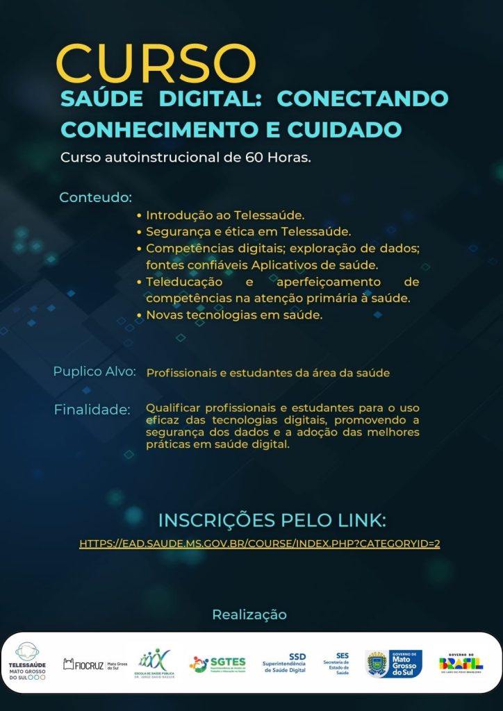 O curso foi desenvolvido de forma conjunta pelo Núcleo de Telessaúde e pela Fiocruz MS, em parceria com a Escola de Saúde Pública Dr. Jorge David Nasser e está disponível aqui.
